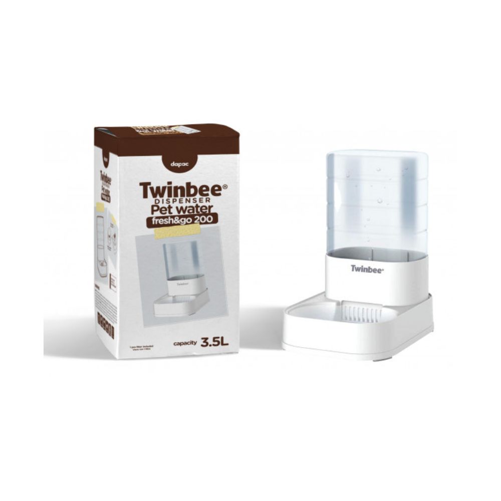 Fuente de agua inteligente Twinbee Pure Water 2,3L para mascotas. Mantiene el agua limpia, fresca y oxigenada. Ideal para gatos y perros pequeños.