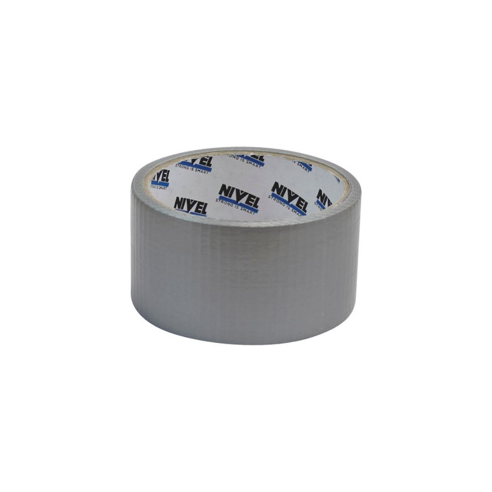 Cinta americana NIVEL gris de 50 m x 48 mm con gran adhesividad, flexible, resistente al agua y fácil de cortar. Ideal para uso industrial, construcción y hogar.