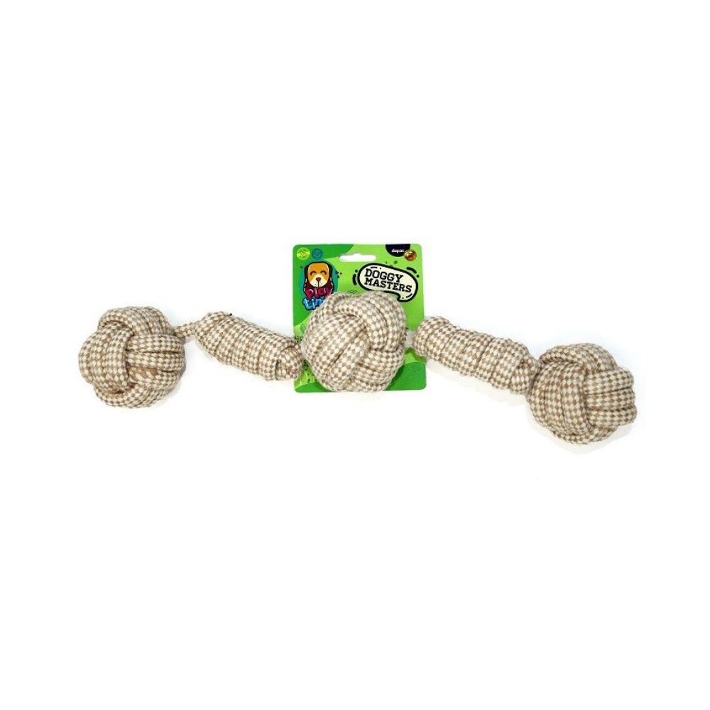Cuerda de yute natural con 3 nudos, 36 cm de largo y 250 g de peso. Juguete ecológico Doggy Masters ideal para morder y jugar al tira y afloja.