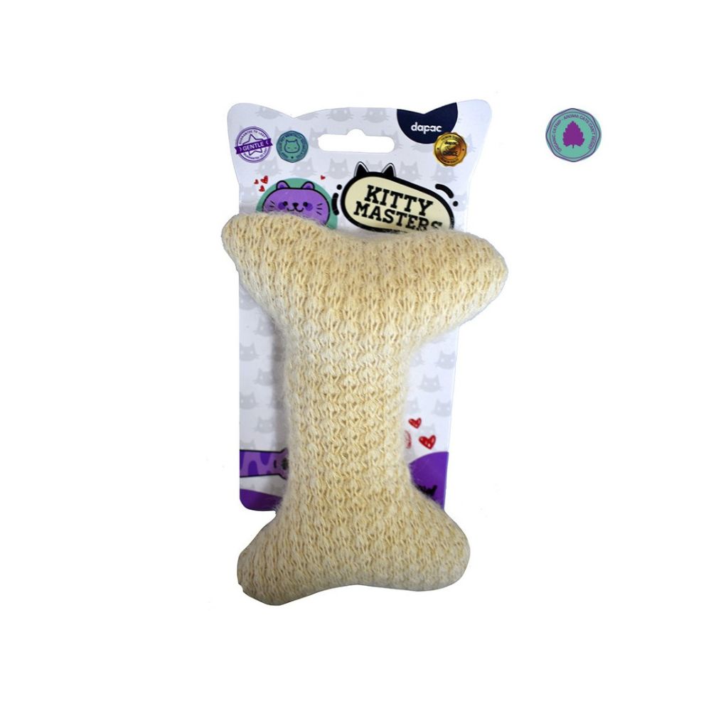 Huesito de peluche con textura de punto relleno de catnip, perfecto para estimular el juego y la actividad de tu gato. Diversión asegurada con aroma irresistible. Medidas: 38 × 26 × 53 cm.