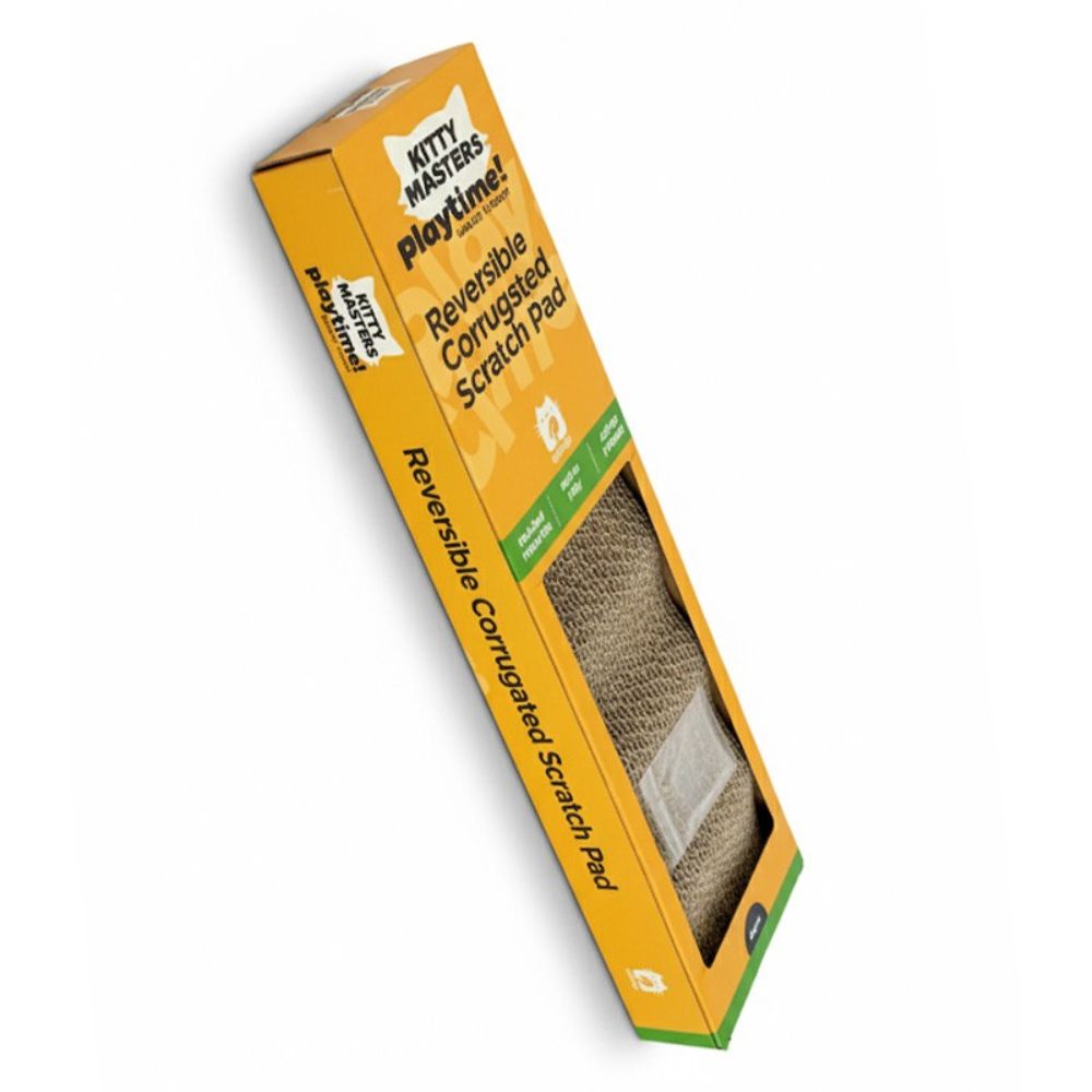 Rascador de cartón corrugado reversible con catnip para gatos. Protege tus muebles mientras tu gato satisface su instinto natural de rascar y estirarse. Ecológico y resistente.