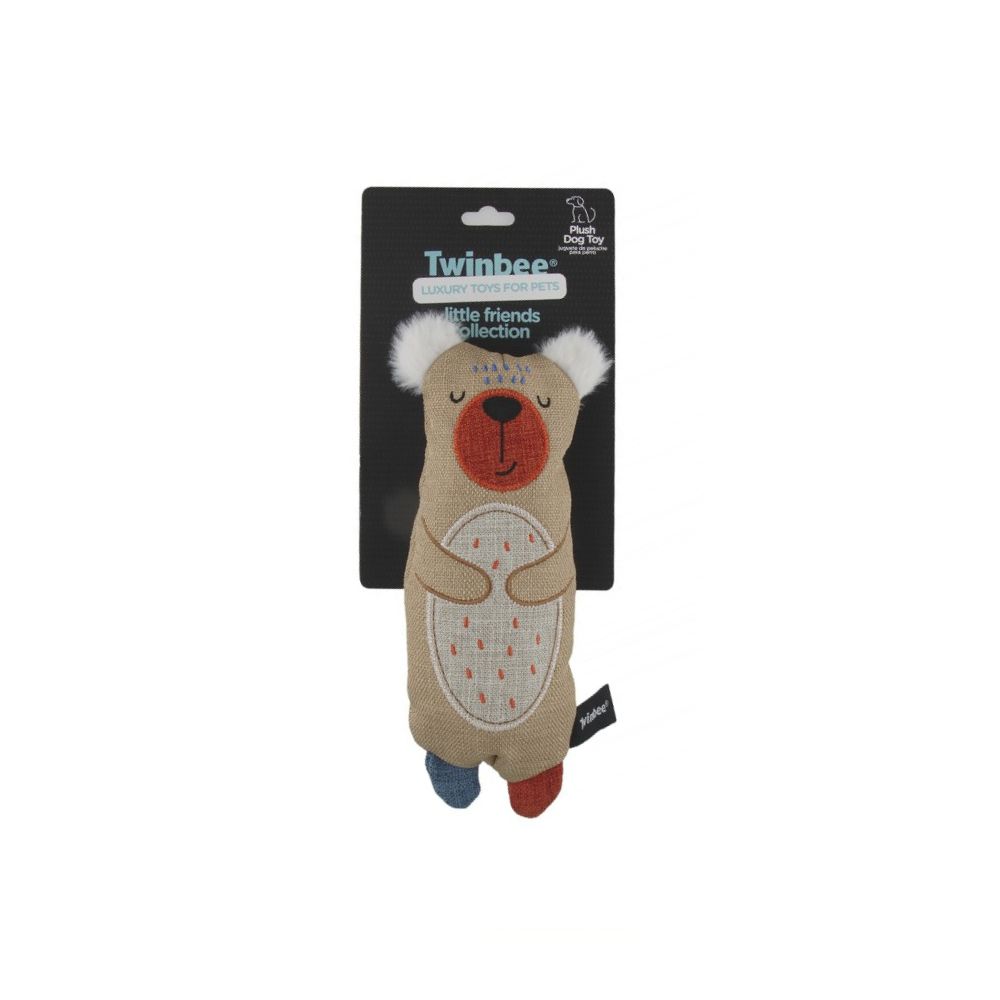 Peluche para perro Twinbee con forma de oso y botella plástica interior que cruje al presionar. Suave, ligero y fácil de agarrar; perfecto para sacudir, buscar y masticación suave. Tamaño: 23,5 × 9 × 6,1 cm.