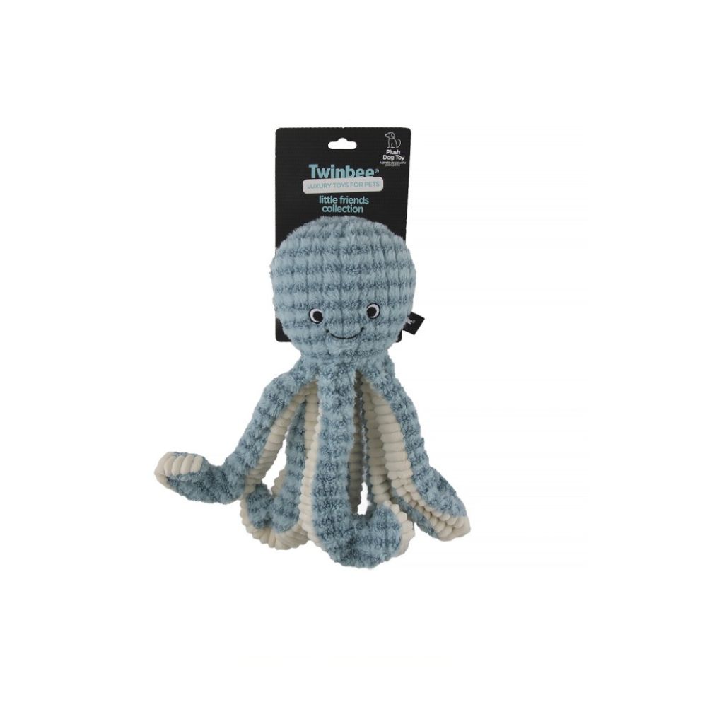 Peluche con forma de pulpo para perro con patas crujientes y sonido en la cabezaal presionar. Textura suave, detalles bordados y diseño ideal para sacudir, buscar y masticación suave. Tamaño: 32 × 15,5 × 9,5 cm.
