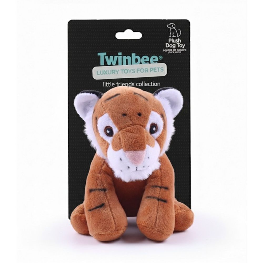 Peluche tigre para perro con textura súper suave y sonido interior. Ideal para juegos de buscar y traer, mimos y masticación suave. Tamaño 15cm.